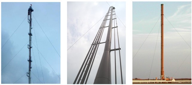 內(nèi)蒙古匯能煤化工有限公司煤制天然氣項(xiàng)目火炬系統(tǒng)總承包工程熱火炬(酸性氣火炬與熱火炬共用火炬頭)、氣相冷火炬、液相冷火炬、罐區(qū)低壓火炬共5套火炬筒體共用一套塔架,火炬排放高度110米。